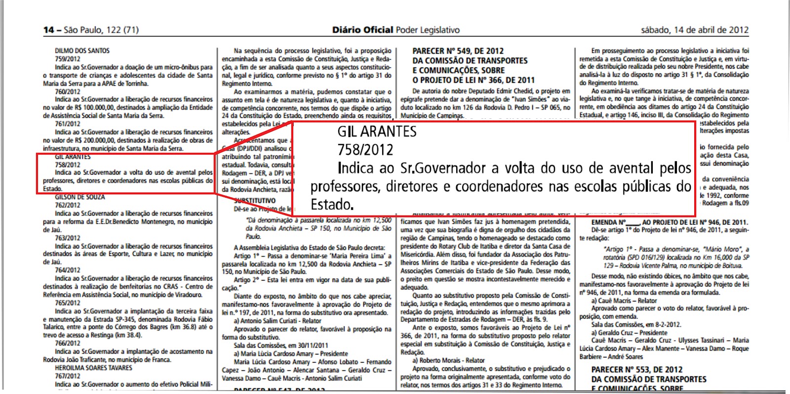 Esse projeto de Lei de autoria do nobre Deputado Estadual Gil Arantes (DEM-SP) pretende resgatar o reconhecimento do professor…